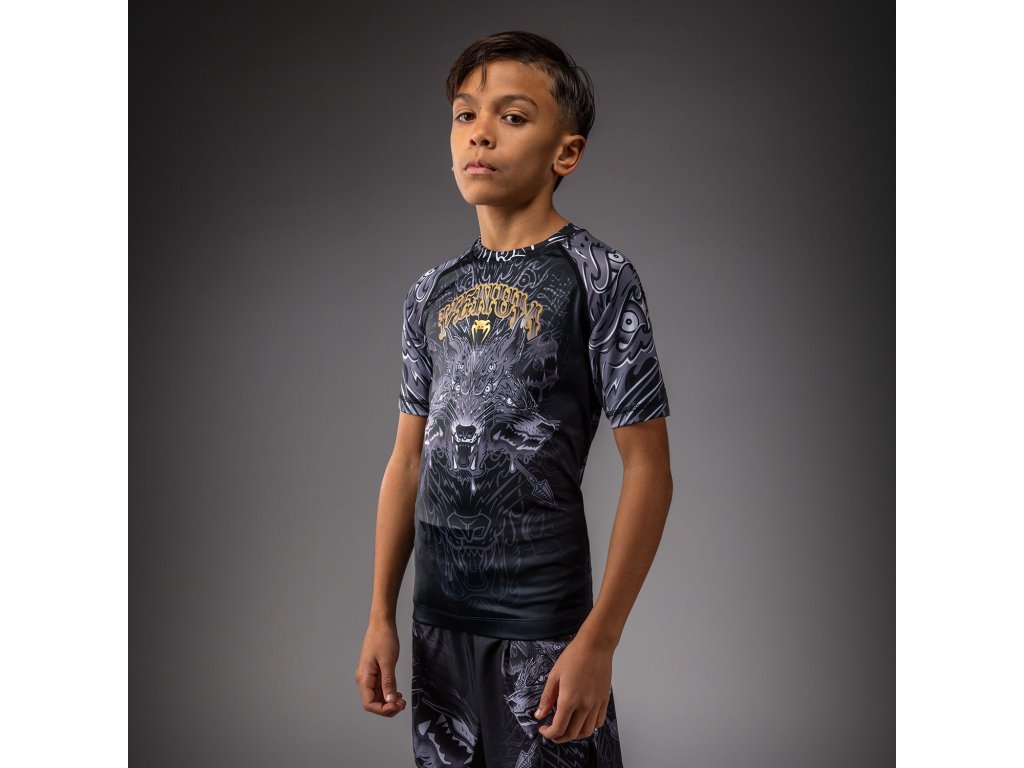KIDS Rashguard Venum Wolf Atak - Short Sleeve - Black/Grey