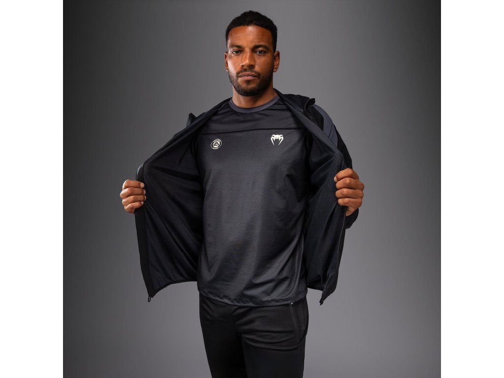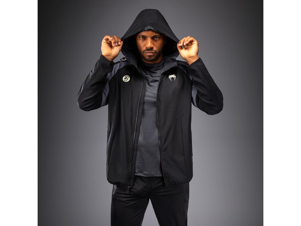 Venum x Roger Gracie Academy Track Jacket is a full zip jacket made with performance fabrics. This jacket, made with performance fabric, is ideal for wearing as an extra layer for the gym or as sportswear on cooler days. The adjustable hood, open pockets and high-neck collar add practical detailing. Pairs perfectly with other items from the same collection.
